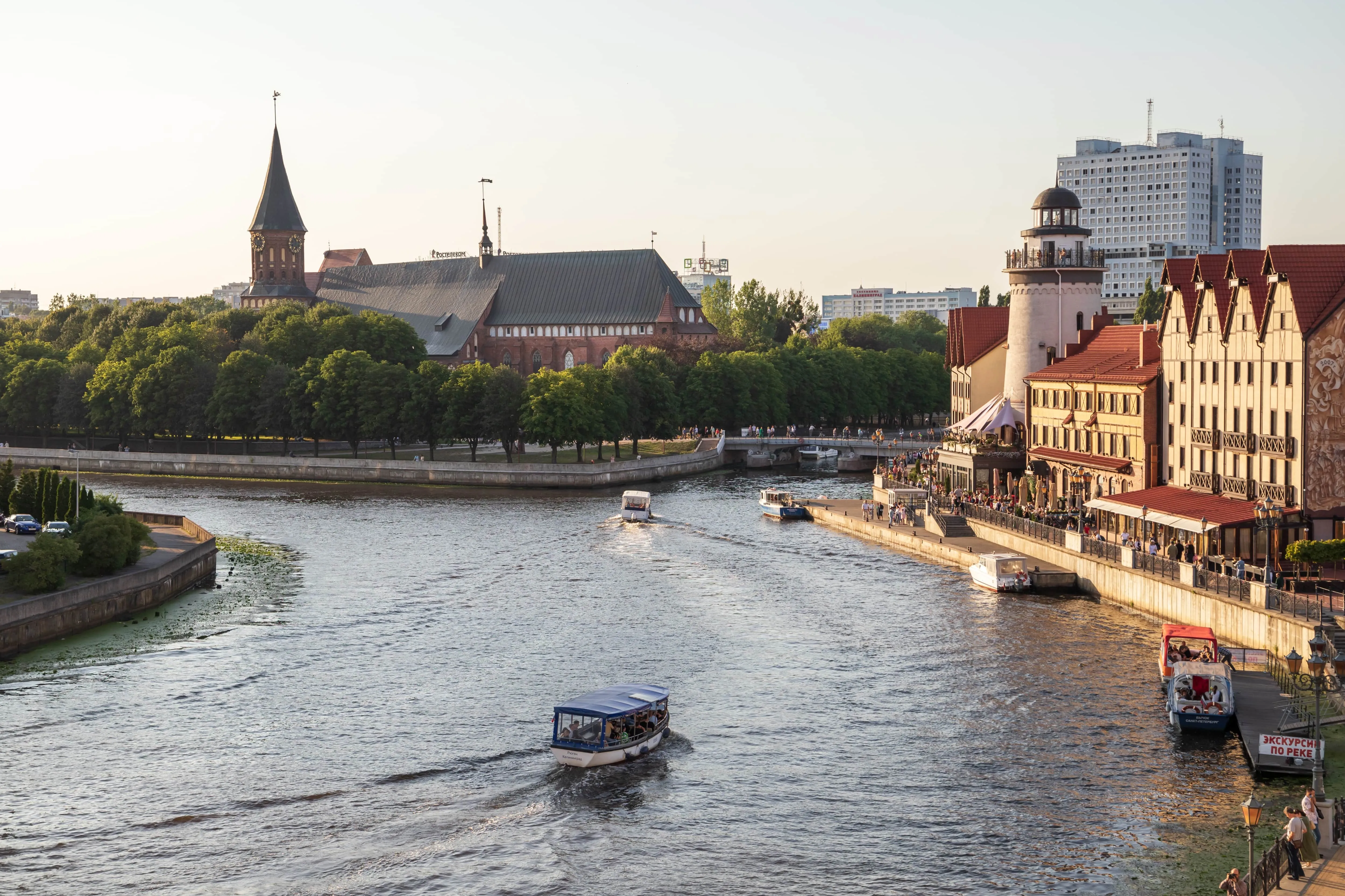 从水面上您将欣赏到城市的美景。 在河上游览期间,您将环绕康德岛航行,经过蜂蜜桥、周年纪念大桥和高桥,沿着停泊着世界海洋博物馆船只的彼得大帝堤岸前行,那里有"伊尔本斯基"浮动灯塔、水陆两栖飞机和潜艇。 普列戈利亚河的航行季节从四月开始。