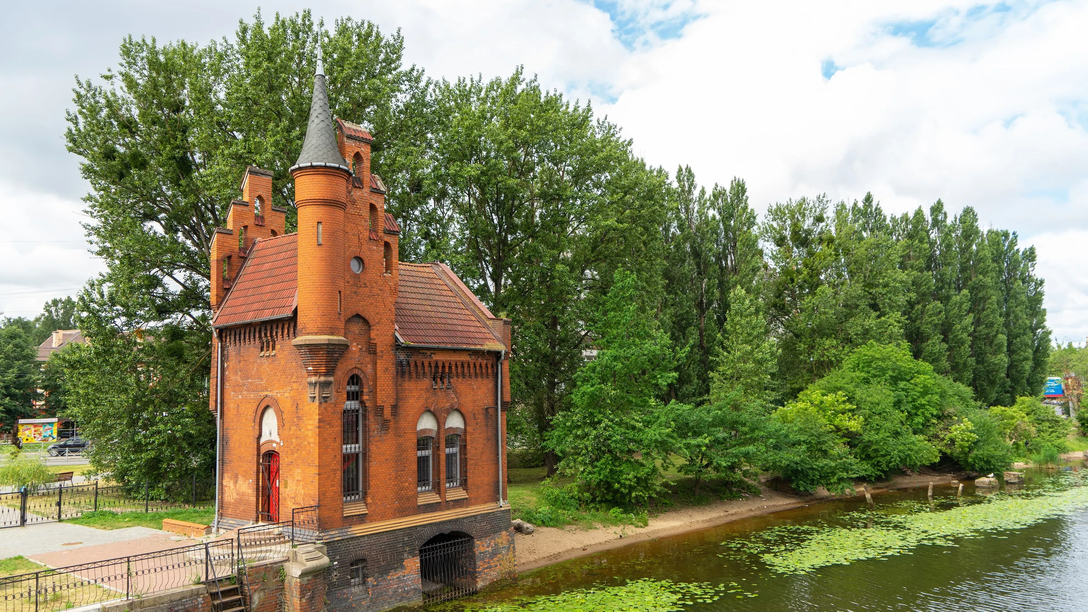 该建筑建于1899年高桥重建时期。 1938年桥梁被移往上游,但这栋房屋保留在原址。建筑采用新哥特式红砖结构,拥有精美的尖顶塔楼。 现为19-20世纪明信片博物馆,可从此处向全球寄送明信片。当地人称此处为"明希豪森男爵之家"。