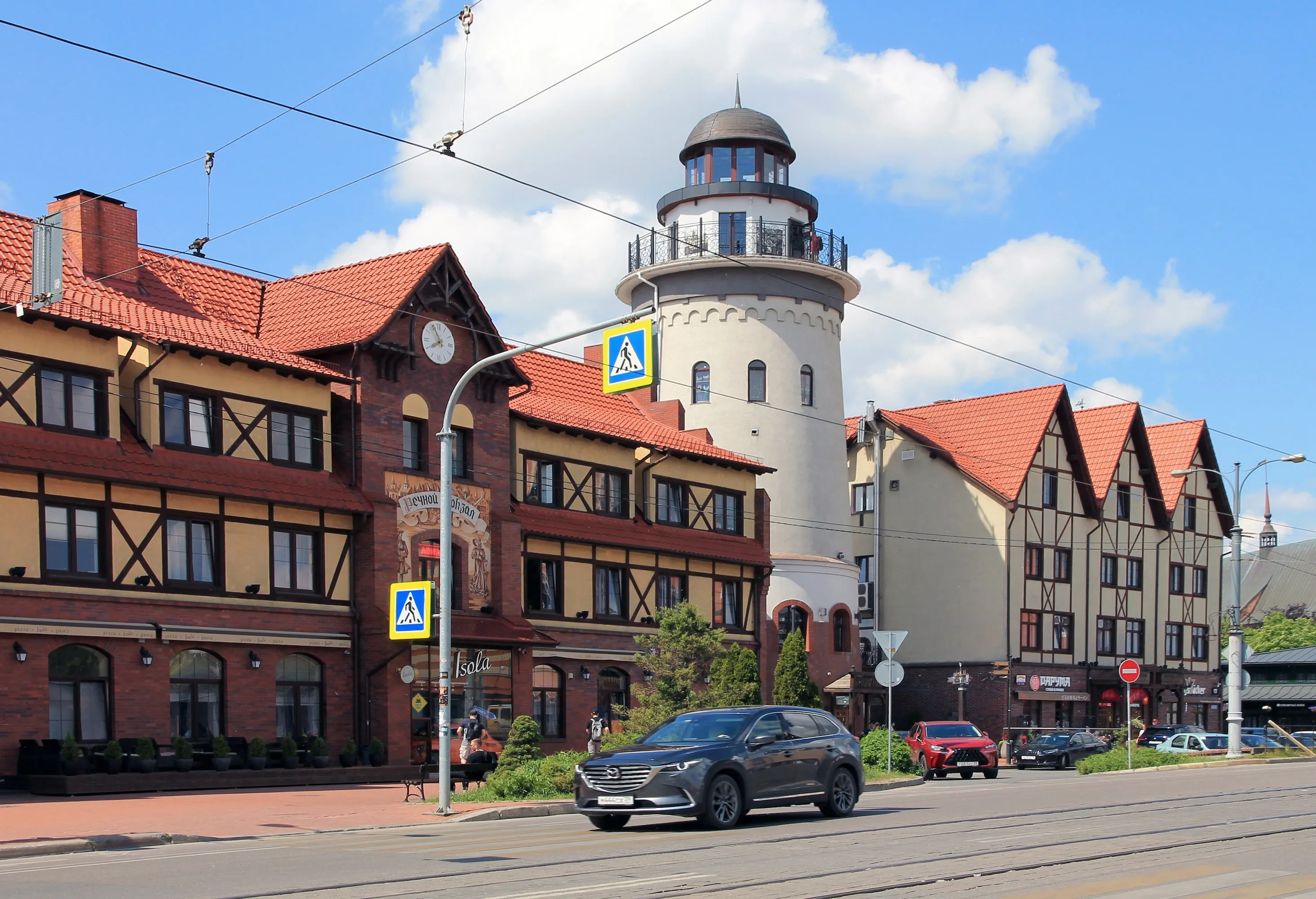 位于渔村中心、拥有360度城市全景的观景平台 这里或许是拍摄全景照片的最佳地点。 在33米高处可俯瞰普列戈利亚河、大教堂和康德岛、新犹太会堂、河滨步道以及加里宁格勒周边景色。 塔楼入口处有肩扛猴子的水手坐在长椅上休息,还有从门后张望的小酒馆老板娘迎接游客。 离开前别忘了去看看封闭平台区的学者猫,并摸摸"幸福之鸟"雕塑的蛋以求好运。