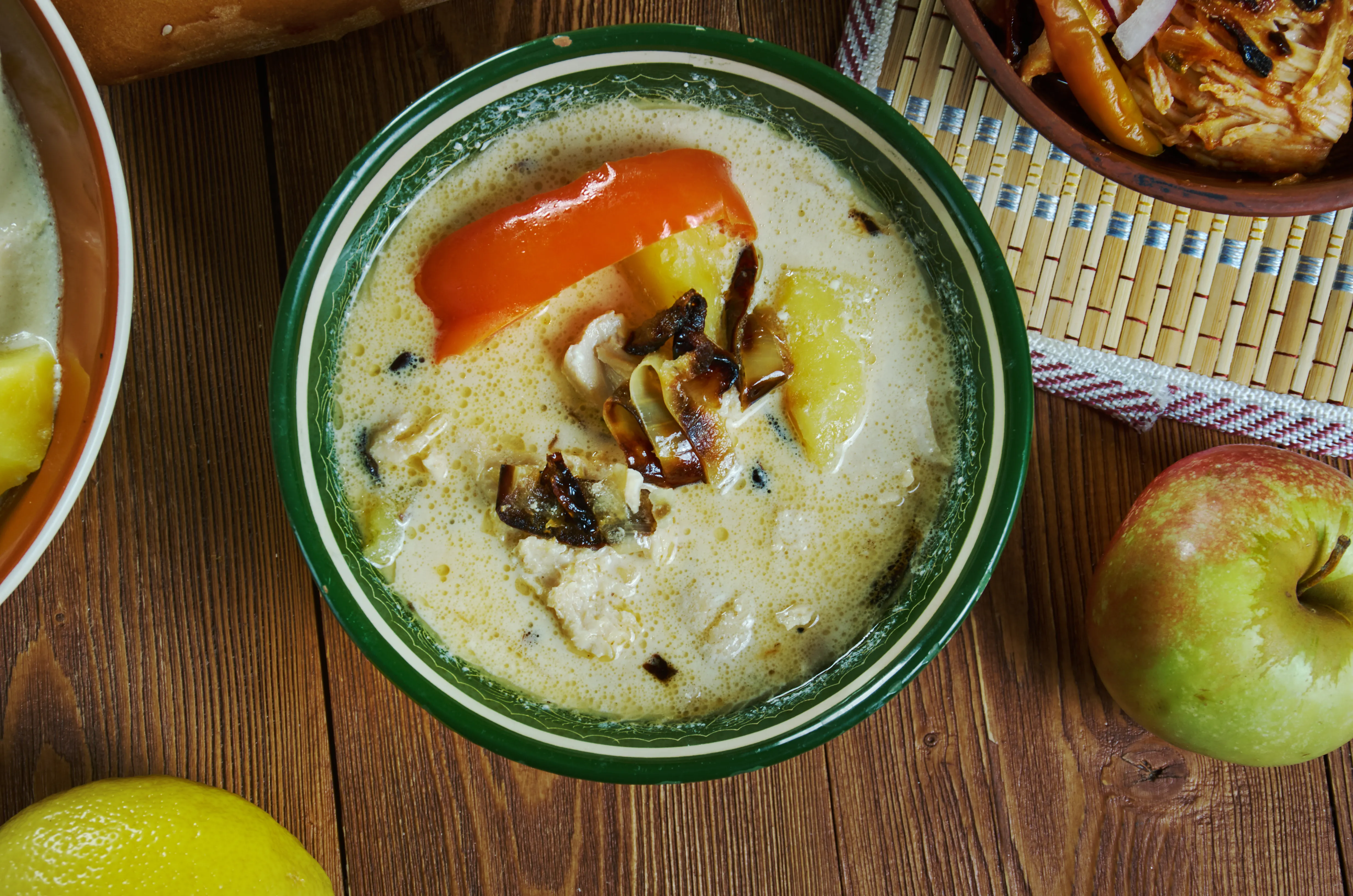 香气浓郁、味道醇厚的传统汤品。 主要食材为加香料的浓汤底、土豆与肉类,风味丰富而饱满。