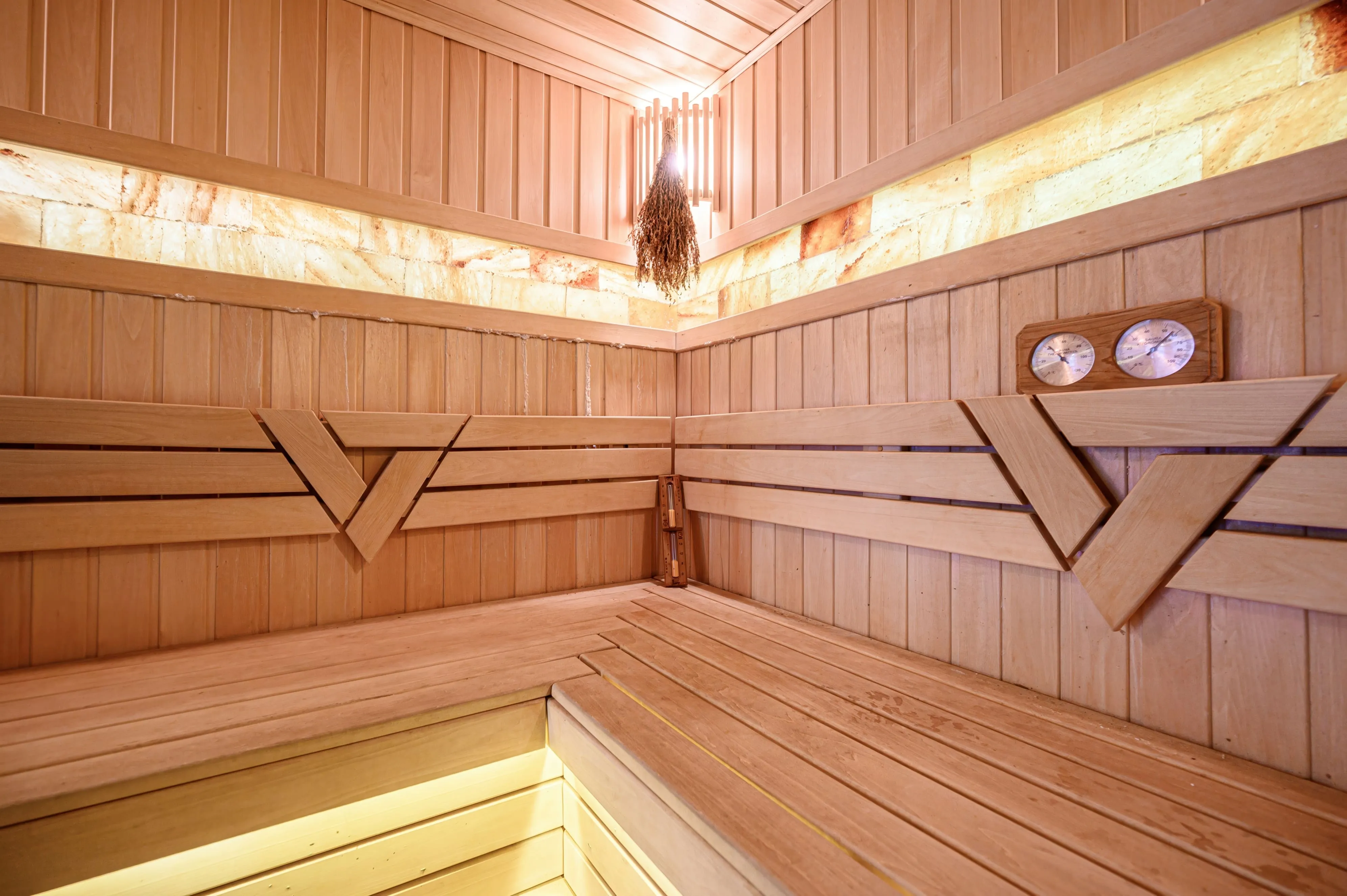 这是一个以铁路为主题的浴场。 这里有两个区域:女宾区和男宾区。 每个区域都有两种桑拿房可选:一种是 85 度、空气更潮湿;另一种是 100 度、空气更干燥。还有冰冷水池用于对比疗程、室外热水池、以及两个户外泳池。 和其他浴场一样,这里每天都有团体桑拿服务:费用已包含在门票中。 桑拿师每次都会为服务准备全新的药草液——有白香草、胡椒薄荷、芳香蒿草、阿布哈兹桉树、冷杉,甚至辣根和大蒜! 而进行私人蒸汽时,客人会被迎接到一间装潢成沙皇时代头等列车包厢的蒸汽房里。至于茶,当然也像俄罗斯铁路传统一样,用精致的金属杯托来呈现。 浴场的餐食菜单上有各种鱼类,包括来自穆库松的冰切生鱼片,也有肉类:牛排、猪肘、啤酒下酒菜,甚至还有甜点。茶单和蜂蜜单里的品类来自俄罗斯不同地区,从高加索到阿尔泰。